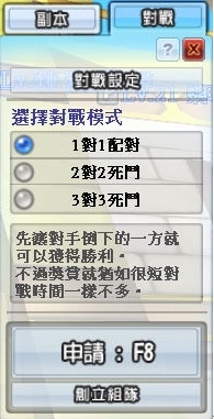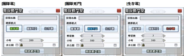 2. 房主可以自由選擇欲進行的模式及戰鬥時間(秒數)及擊殺數目標。