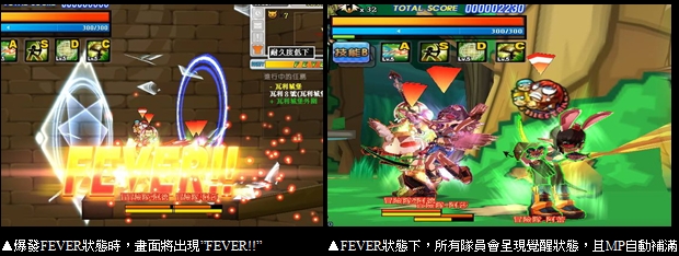 3.當隊伍人數為4人,且士氣指數達100時,在繼續副本戰鬥的過程中將會自動爆發為「FEVER狀態」,所