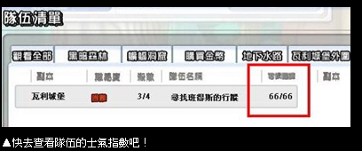 7.在進行副本戰鬥前,建議可以開啟隊伍清單查看「士氣指數」,可以幫助你更快速的提昇經驗值唷!