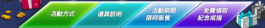 活動方式 道具說明 活動期間限時販售 免費領取紀念戒指