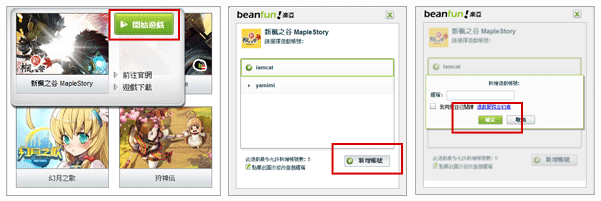 想要快速開啟遊戲帳號嗎?請依序點選下列三個紅框按鈕,即可完成新增!