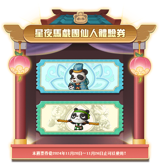 🍑每週三可以從【成為神仙的方法】、【一!二!蕭公的內功修煉】選擇其中一種票券,根據選擇獲得星夜馬戲團狩獵技能。