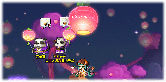 🍑如果想繼續放沒有效果的天燈,可以向NPC裘老頭支付1000萬楓幣放天燈。
