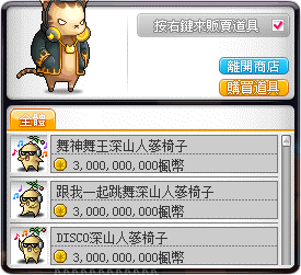 🍑可以使用楓幣跟活動地圖的NPC喵仙購買永久椅子。