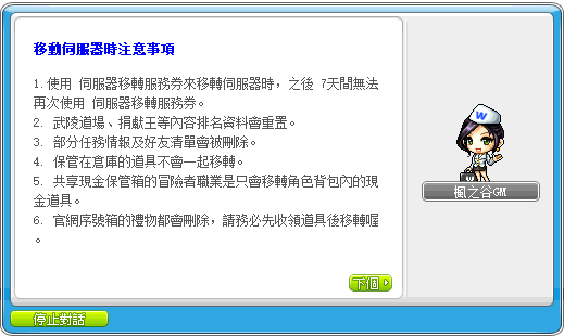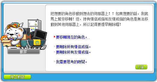 4.選擇完畢後角色會自動斷線,再次登入遊戲後角色即移動至選擇移民的伺服器。