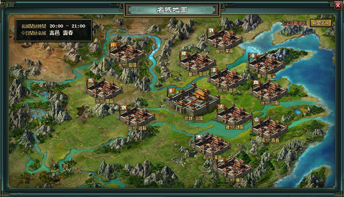 1.每天晚上20:00到21:00,開放名城戰。