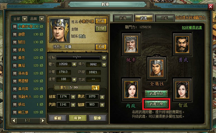 2.優化武魂,增加“一鍵替換”按鈕,類似換裝備的“換裝”按鈕。