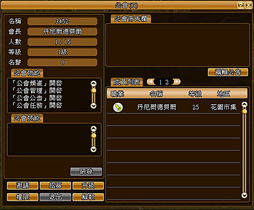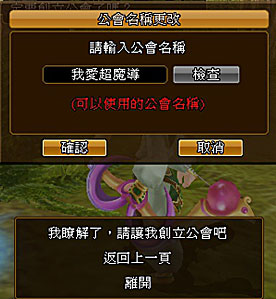 3. 在主城中找「公會管理員」對話,選擇「創立公會」,輸入想要的公會名稱後就可以擁有自己的公