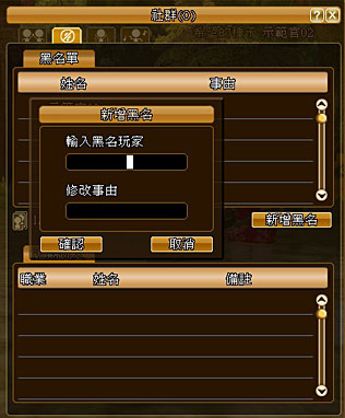 點擊「新增黑名」按鈕,輸入想加入的對象名稱後就會直接將對方加入黑名單中。