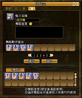 玩家可以透過自訂舞步打造屬於自己的舞步,先輸入舞步的名稱,然後打入跳舞時想說的話,最後用下列的舞蹈去任意排列出一段舞步,儲存後放在快捷列,以後在任何地方都可以show出自己獨特的舞步喔!