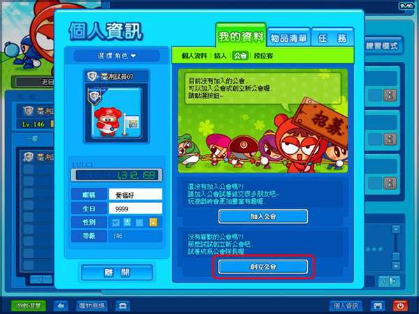 1.申請創立公會的角色等級需達31級,並且身上需擁有30萬 以上Lucci幣才可申請創立。