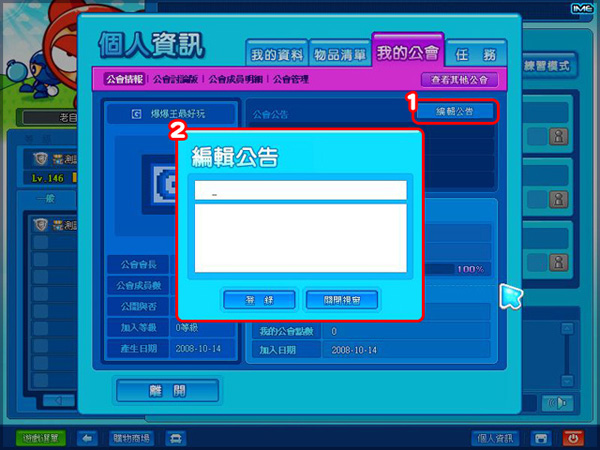 A.[公會公告]:只有公會會長才可發佈與編輯公告內容。 |