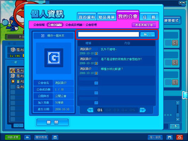 二、公會討論版:所有成員皆可發佈討論內容,請確認好欲討論內容,再按下[輸入]即可發佈。(限35字以內) |