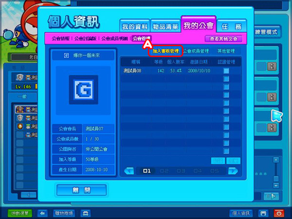 A.[加入審核管理]:公會會長可透過此頁面,審核申請加入的玩家。 |