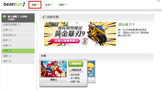 2.登入遊戲橘子帳號後,選擇「遊戲→線上遊戲」,接著將滑鼠移到「爆爆王」遊戲圖示後,點選「開始遊戲」。