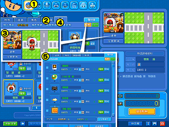 可自行選擇自己喜愛的角色,選擇不同的角色,將會出現該角色所有能購買的道具。