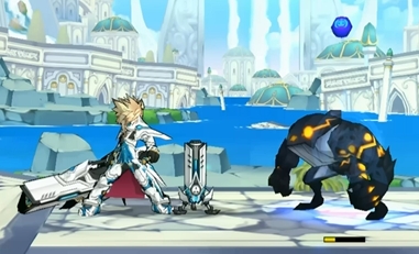 大力地往前方刺,裝火砲球後,用砲身打擊敵人推遠,擺出固定砲擊姿勢。
