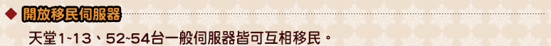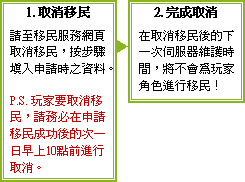天堂角色申請移民成功後,一律不得中途變更或取消,請玩家申請前謹慎評估。 |
