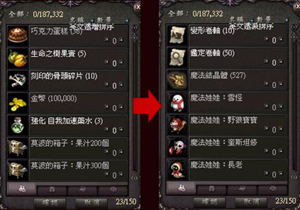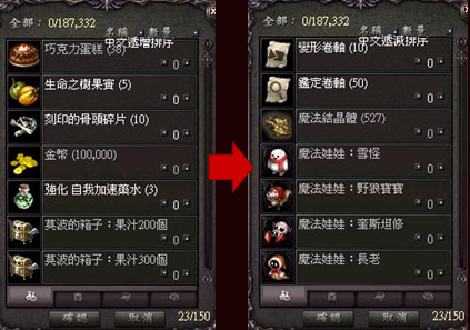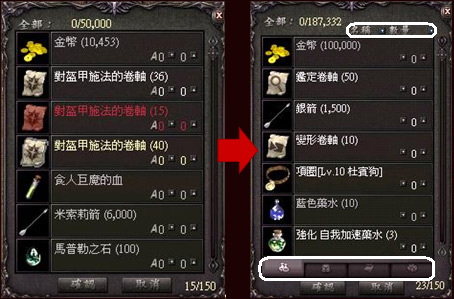 倉庫介面下方新增四個分頁功能:全部、裝備、任務、其他。