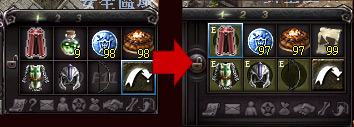 跟道具欄一樣,使用中的裝備在熱鍵視窗上也會同時出現使用中的顯示。