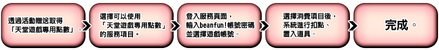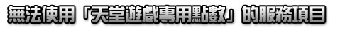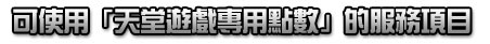 | 「天堂遊戲專用點數」等同於「遊戲橘子點數」,但僅適用於以下的服務項目扣點。 |
