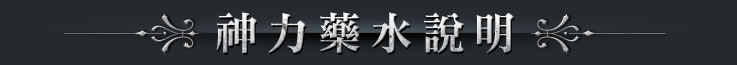 | 藥瓶 | 1個「藥瓶」搭配1個「人蔘」或1個「靈芝」向「神力藥水兌換專員」兌換後,可以得到「神力禮盒A」或「神力禮盒B」。不可刪除、不可轉移、不可溶解、不可封印。 | 1樂豆點 |