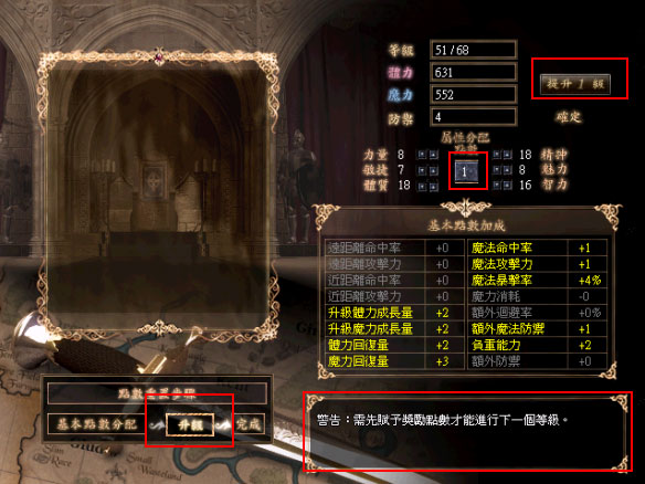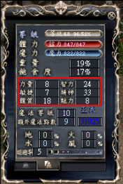 回到遊戲中,可以看到角色的能力值,如同剛剛配置的點數一樣,即為成功完成點數重置的動作!