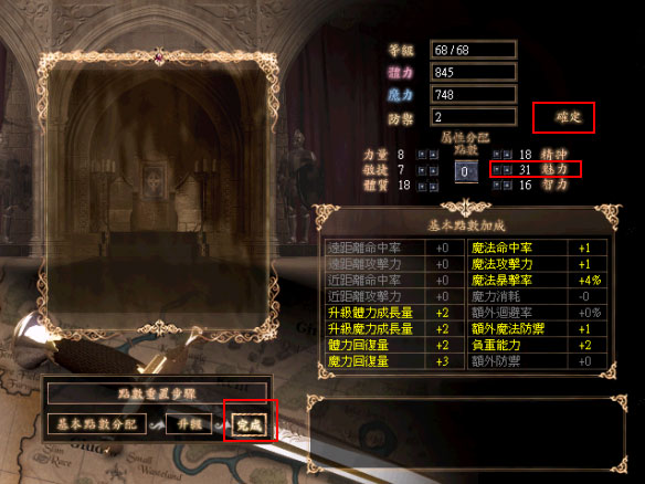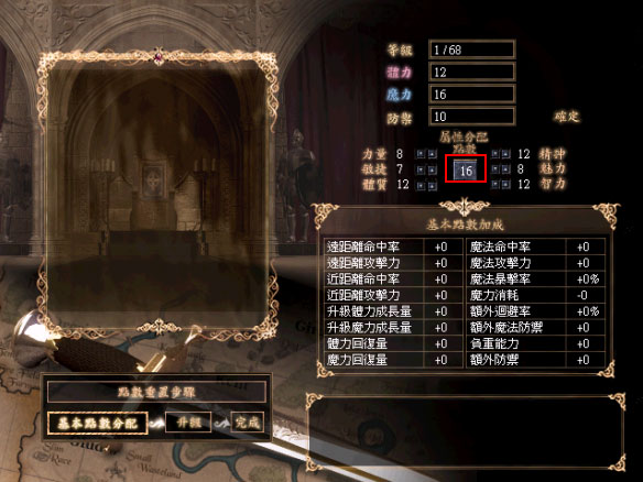 如法師職業進行初始化時,就會回到剛出生的角色,立即有16點能力可以配置。