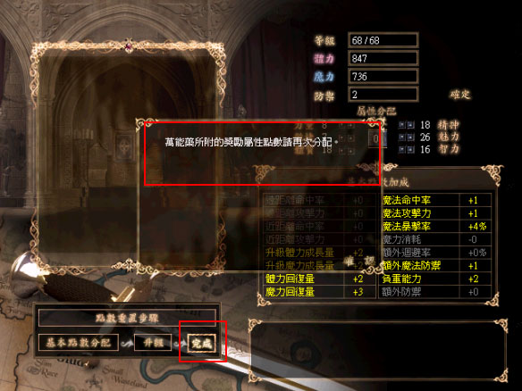 使用 LV.68 法師,使用回憶蠟燭向NPC進行點數重置的動作,則會出現以下的視窗: