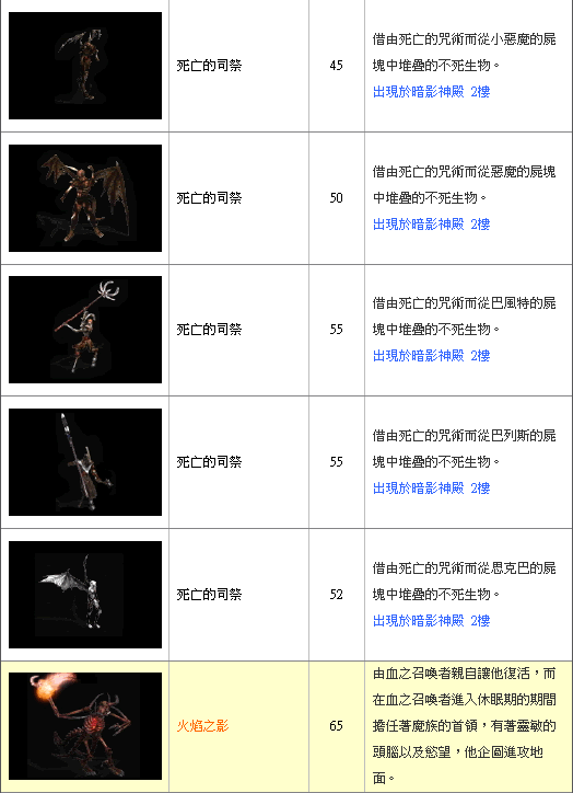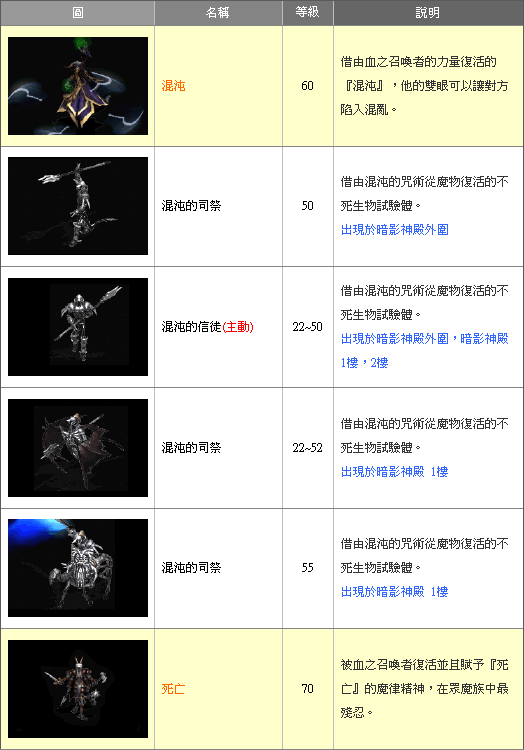 暗影神殿是『火焰之影』的城堡,也是搖籃;被賦予『混沌』、『死亡』魔律精神的不死魔族,以及他的手下守護此地,最上層是血之召喚者代理人,同時也是目前魔族的首領『火焰之影』的所在地。