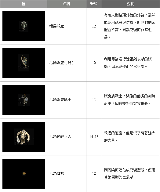 『不死魔族』 陣營(火焰之影、墮落、混沌、死亡、墮落之司祭、混沌之司祭、死亡之司祭等)是與『原生魔族』 陣營(炎魔的分身、魔族神殿中所出現的炎魔的手下)是敵對關係,因此只要打倒一方,就會增加另一方的友好度,而友好度上升至某各程度,就不會受到該方NPC的主動攻擊。