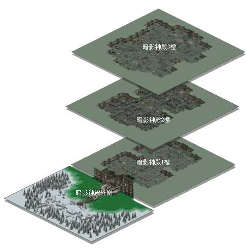 從暗影神殿外圍就可以進入暗影神殿1樓,至於暗影神殿2樓、暗影神殿3樓是要透過任務得到鑰匙或要提升 對火焰之影的友好度才可以前往。