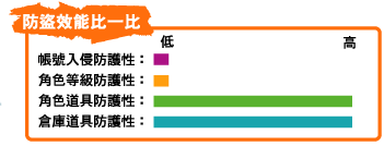 受封印道具無法交易、無法丟下、無法刪除,卻可在同帳號內的角色之間藉由個人倉庫自由轉移與穿脫,兼顧了方便性與安全性的設定.即使帳號不慎遭盜用,盜用者亦無法自帳號中取走任何受封印的道具。 |