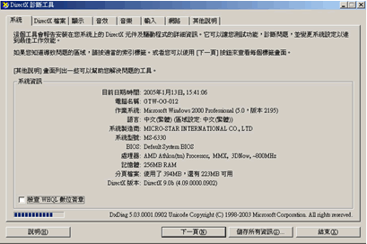如何確認電腦規格:在Direct X setup 資料夾中可以看到電腦的詳細規格 |