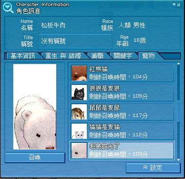 這時依照自己的狀況選擇後,點選[應用]按鍵,寵物角色會依照設定值的來轉換並行動。