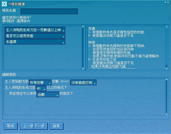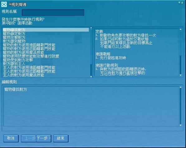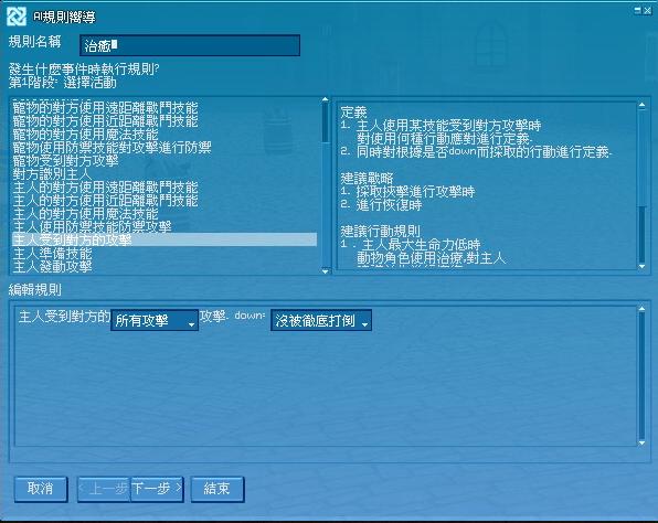 依此類推的方式設定成多樣化的行動規則,這時其中一個AI設定就是可使用到動物角色部份。