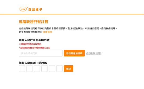 請依照頁面指示,輸入手機門號完成進階認證。完成進階認證後,玩家即可儲值與購點,並在未來享有更多元的服務內容