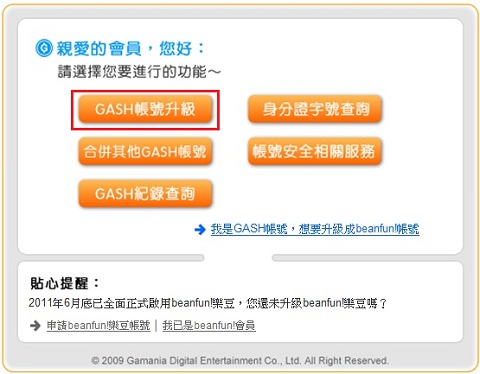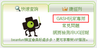 在遊戲橘子官網上,點選「快速查詢」並選擇「GASH玩家專用」