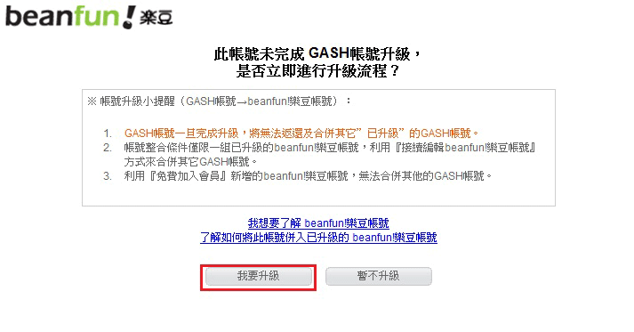升級前請詳讀帳號升級小提醒,以確保您的權益