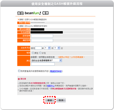 設定過程中,您將需要輸入原GASH帳號所對應的身分證字號