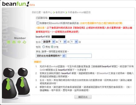 輸入生日、性別與安全提問,無誤後點選「確認送出」。未來查詢密碼與核對個人身分將以此為依據