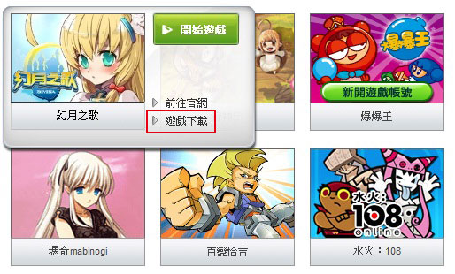 將滑鼠游標移至欲安裝的遊戲之上,點選「遊戲下載」