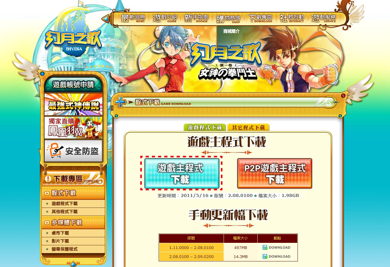 此時將會前往遊戲官網主程式下載頁面,請點選「主程式下載」,確定「執行」