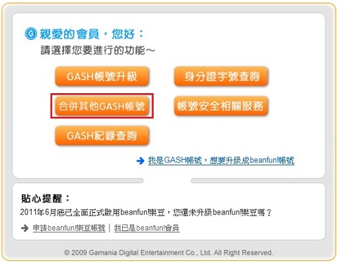 在遊戲橘子官網上,點選「快速查詢」並選擇「GASH玩家專用」