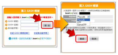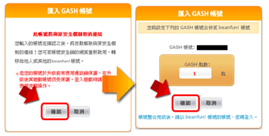 點選「確認」後會顯示該GASH帳號與點數,核對無誤後請再次點選「確認」