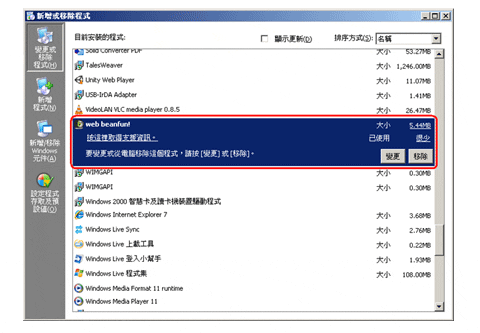 在安裝過程中,若出現〝您已有安裝其它版本〞時,請至『控制台』→『新增移除程式』→ 將web 遊戲橘子此程式移除後,並再次安裝即可。