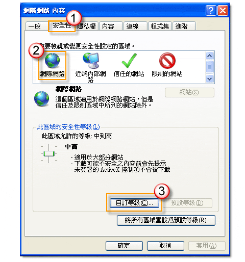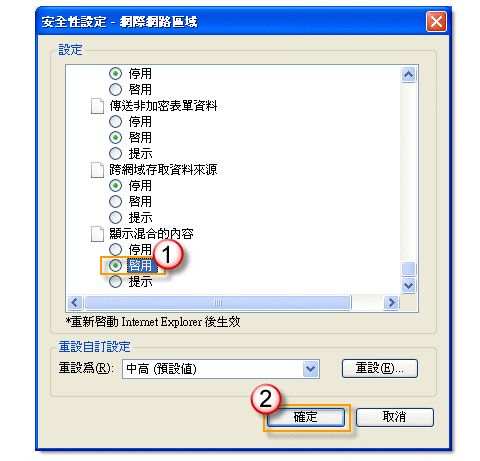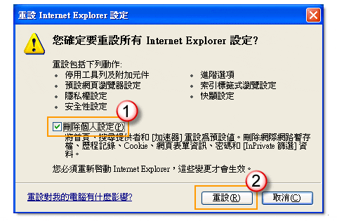 將IE進階設定還原成預設值(還原方式:IE/工具/網際網路選項/進階/還原成進階預設值) |